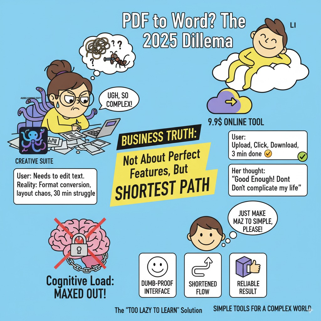 昨天朋友小李又在游戏群里问:"有没有好用的PDF转Word工具?在线等!超级急!!"我看着这个问题(心想:2025年了还在问这个?),突然意识到一个被忽视的商业真相。